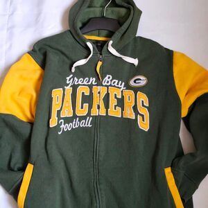 Rep your team in classic green and gold! This full-zip Packers hoodie is official NFL merchandise and super comfy. Features front pockets, drawstring hood, and bold team colors.