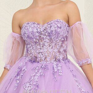Step into enchantment with this strapless A-line gown that seamlessly merges timeless elegance with modern allure. The intricate lace appliqué on shimmering tulle adds a touch of ethereal romance, ensuring you stand out with grace and sophistication. This gown's versatility shines through with removable sleeves, allowing you to tailor your look to perfection. The corset boning not only enhances the delicate aesthetic but also ensures a flattering fit. Elevate your style and make a statement at any special occasion with this captivating and meticulously crafted gown.