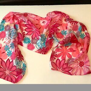Greenbriar Intl. - Pink floral rectangular scarf, 64 inches x 13 inches