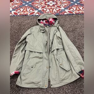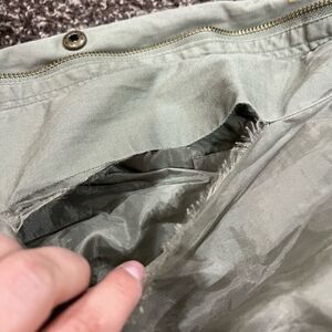 Minor hole- see pics. It doesn’t affect anything and you can’t tell when your wearing it. Size medium.