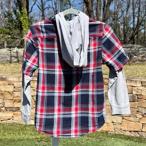 Greendog Flannel Shirt with Gray Hoodie and Long Sleeves
