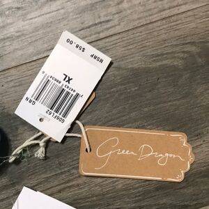 Green Dragon tank top or swimsuit cover-up. The beautiful fabric fades from a teal blue to a lime green. It’s made of a soft stretch knit. It feels very nice on.
