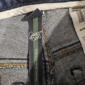 Elevate your denim game with these Greening the Blues Flare Jeans in size 26. These jeans are made from organic high-quality denim fabric that is built to last. The flared leg style adds a touch of retro to your wardrobe, while the regular fit ensures comfort all day long. The blue color is versatile and can be paired with any top, making it a must-have addition to your closet. These jeans are crafted in Poland and are perfect for women who appreciate quality and style.