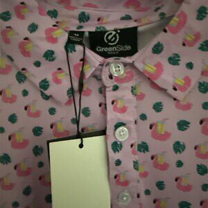 Greenside Golf Polo - NWT - Pink Flamingo/Drinks - Medium - Tropical