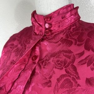 Greenwich Square Button Down Top Women 11/12 Pink Floral Embossed Satin Mandarin Collar Hidden Buttons
