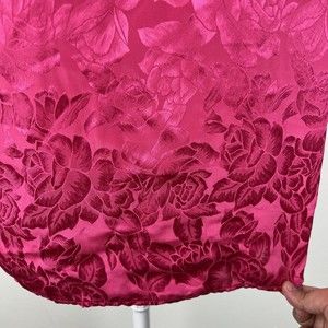 Greenwich Square Button Down Top Women 11/12 Pink Floral Embossed Satin Mandarin