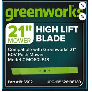 Greenworks 21 In. Mulching Mower Blade 1816502 for 60V walk behind mower