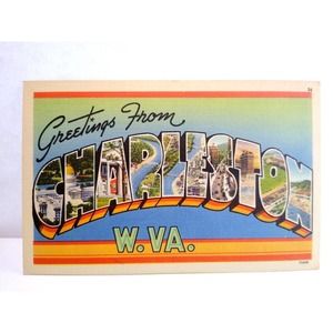 Greetings From Charleston West Virginia Large Big Letter Postcard Linen WV