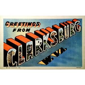 Greetings From Clarksburg West Virginia Large Letter Postcard Linen Curt Teich