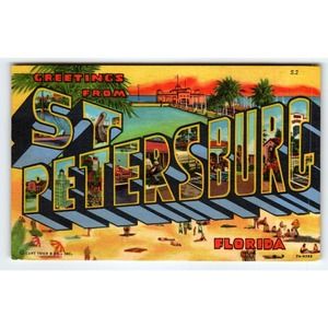 Greetings From St Petersburg Florida Large Letter Linen Postcard Beach Town