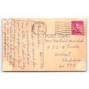 Posted with cancel. Vintage original linen post card. Has corner creases and age wear. Stock #LL566.