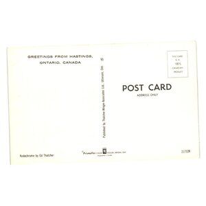 Capture a piece of Ontario's natural beauty with this vibrant vintage postcard, showcasing an iconic lakeside view in Hastings, Canada.