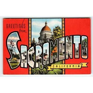 Greetings from Sacramento California Vintage Large Letter Postcard Capitol Build
