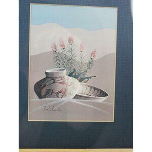 This framed and matted reproduction print by Greg Anderson features a serene Southwest scene with Hopi pottery and quail. The piece adds a touch of southwestern charm to any room.