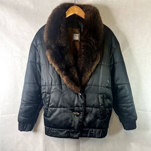 Greg Bell Faux Fur Collar Coat Black with Brown Fur Size Small
