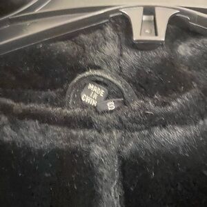 Greg Bell vintage women’s shearling coat in black size small. This great coat is an excellent preowned condition with no visible signs of wear. It will definitely keep you toasty all winter. The coat has buttons down the front, side pockets and a zippered interior pocket.