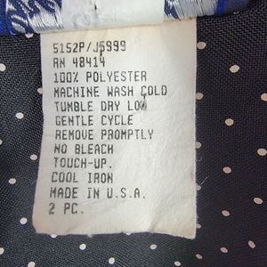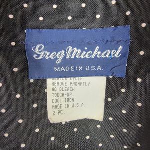 Greg Michael Blazer Vintage women's size 6 Shoulder pads 100% polyester Polka dot pattern 4 buttons Button dickey Chest across 20" Sleeve 22" Length 25" Originally part of a 2-piece outfit...JACKET ONLY.
