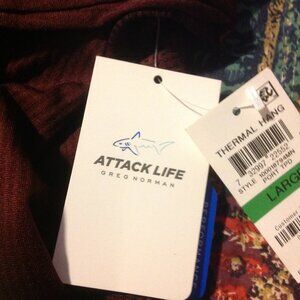 Up for sale is a brand new with tags men's Greg Norman Attack Life port performance long sleeve T-shirt, USA size large. Greg Norman calls this color port, but it looks burgundy to me.