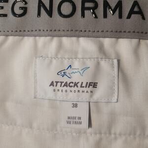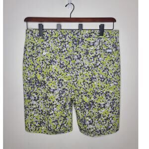 Greg Norman Attack Life green grey abstract flat front golf shorts - 38