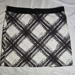 Elevate your activewear with this sleek Greg Norman golf skort in women's size 12. Designed in a unique black and white pattern, this skort combines performance and style with a soft rayon-blend fabric and built-in shorts for comfort and coverage. Featuring a comfort waistband, it allows for a custom fit that moves with you on and off the course. Functional slash pockets add convenience while maintaining a clean silhouette.