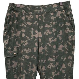 Greg Norman Camo Cargo Pants Embroidered Roses Green Stretch Size 6