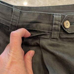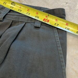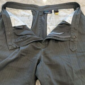 Classic Greg Norman men’s Bermuda shorts in dark green. 100% cotton with pleated front and multiple pockets. Ideal for golf or casual wear. Size 36 waist. Good preowned condition with light pilling between legs—no stains or holes. All closures intact.