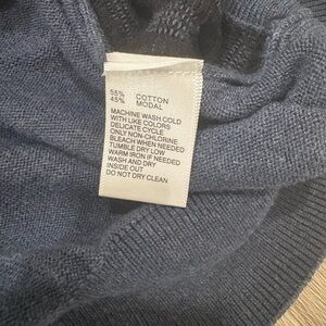 Elegant navy V-neck sweater with ribbed texture. Ideal for versatile styling.