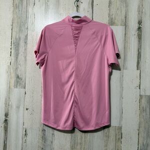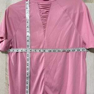 Stylish pink top from Greg Norman Collection. Features ruched detailing and a comfortable fit.
