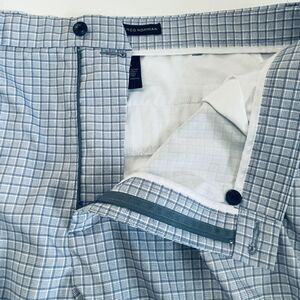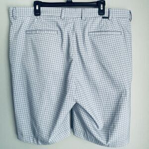 Greg Norman Golf Chino Shorts Mens Size 40 Blue Zip Pocket Check Pattern Stretch