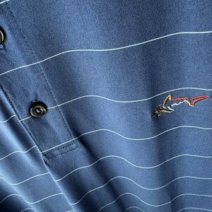 • Polo: XL, blue striped, breathable moisture-wicking fabric