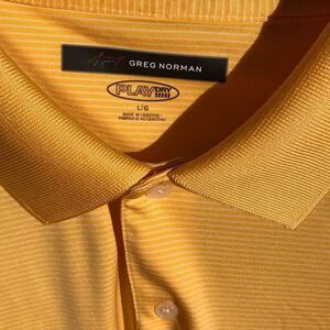 Greg Norman Golf Polo play dry Shirt yellow striped Size Large short sleeve