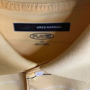 Greg Norman Golf Polo play dry Shirt yellow striped Size Large short sleeve - polyester
