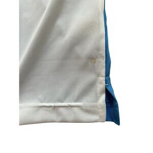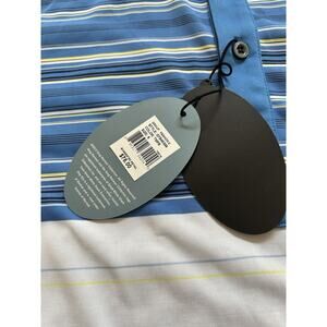 Elevate your golf game with this stylish Greg Norman Polo Shirt in size S. The vibrant blue and white stripes and colorful theme make it a standout piece in your wardrobe. This shirt is designed for performance and activity on the golf course, with its Play Dry technology that wicks away moisture to keep you cool and comfortable. The short sleeves and button closure provide a classic look while the model, Greg Norman Play Dry Performance, ensures top-notch quality. Get this brand new with tags shirt at an amazing price without worrying about its condition.