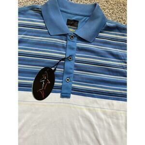 Greg Norman Golf Shirt Play Dry Performance Sz S Blue white Stripes NWT $75