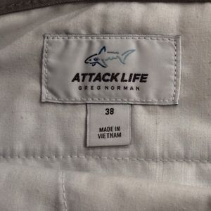 Greg Norman Golf Shorts Men’s 38 White & Light Blue Diagonal Graduated Stripes