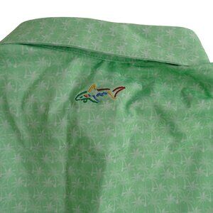 Greg Norman Green Palm Tree Print Golf Polo Shirt Men Size S Play Dry Stretch