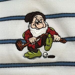 Disney’s Grumpy breaking his golf club over his knee embroidered on left chest