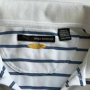 Greg Norman Grumpy Golf Shirt Play Dry White W/Blue Black Stripes XXL Tags/Flaw