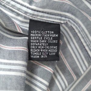 Greg Norman Long Sleeve Button Up Shirt Mens L Cotton Black Red White Stripe