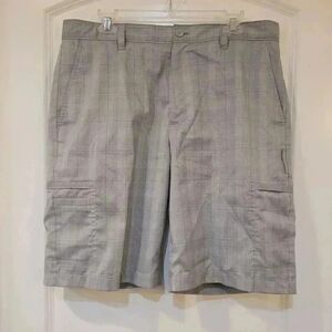 Greg Norman Men's Gray Plaid Poly/Spandex Flat Front Golf Shorts EUC sz 34 Waist 34 Rise 11.5 Inseam 10
