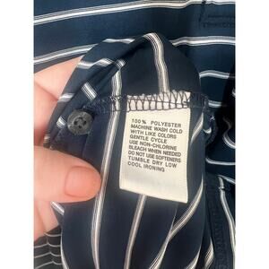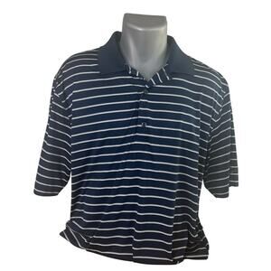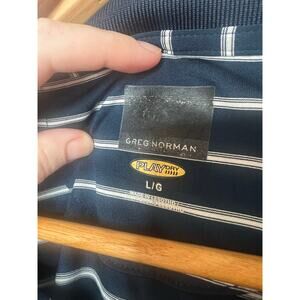 Greg Norman Men's Play Dry Navy Blue and White Striped Golf Polo Size Large