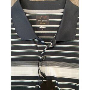Greg Norman Mens Polo Shirt XL Grey Striped Play Dry Performance Golf Apparel