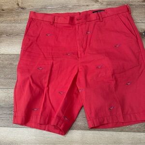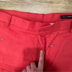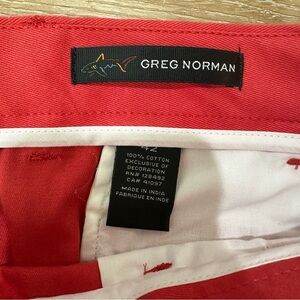 Greg Norman Men’s Red Shark Logo Flat Front Chino Shorts Size 42 GUC