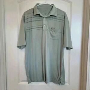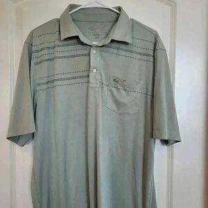 Greg Norman Men's Sage Green Polyester Polo Golf Shirt EUC sz L Pit to pit 22.5 Length 28 Sleeve Length 11