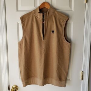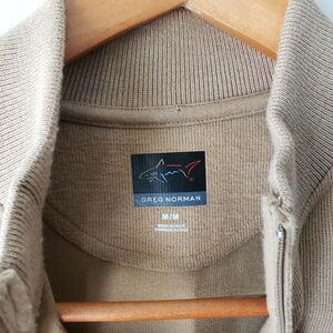 Greg Norman Men's Sweater Vest M Tan 1/4 Zip Cotton Polyester Blend.