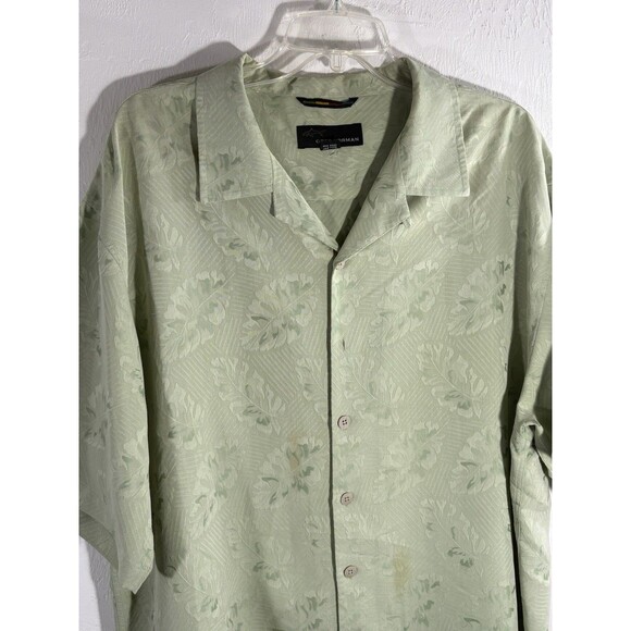 Greg Norman Pale Green Hawaiian Leaf Print XL Men’s Shirt Button Up Camp Casual