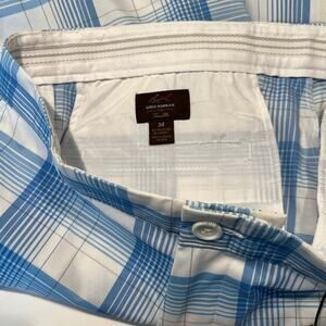 Greg Norman Performance Plaid Golf Shorts - Men's 34 - Blue/White Tasso Elba