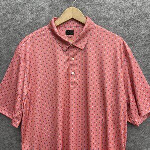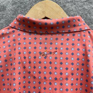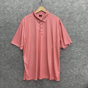 The Greg Norman Performance Polo Play Dry Men's Peach Golf Polo Shirt in size XXL is a stylish and functional piece for any man's wardrobe. Made from a lightweight and breathable microfiber polyester fabric, this polo features a graphic print design with a button-down collar and short sleeves, making it perfect for casual outings, activewear, or even workwear. The shirt is designed for performance, with moisture-wicking and quick-drying properties, making it ideal for outdoor activities like golfing. With its regular fit and stretch material, this polo offers comfort and style for all seasons.