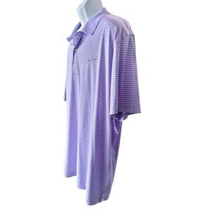 Greg Norman Play Dry Mens Polo Shirt XXL Purple Striped Short Sleeve Shark Logo