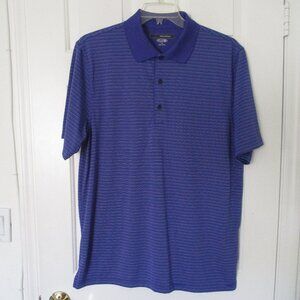 Greg Norman Play Dry Mens S/S Blue Golf Polo Shirt. Size Large. Armpit-to-armpit 23", Length 31". 100% Polyester in Periwinkle Blue/Purple Stripe. New w/o Tags, suitable for gifting.
